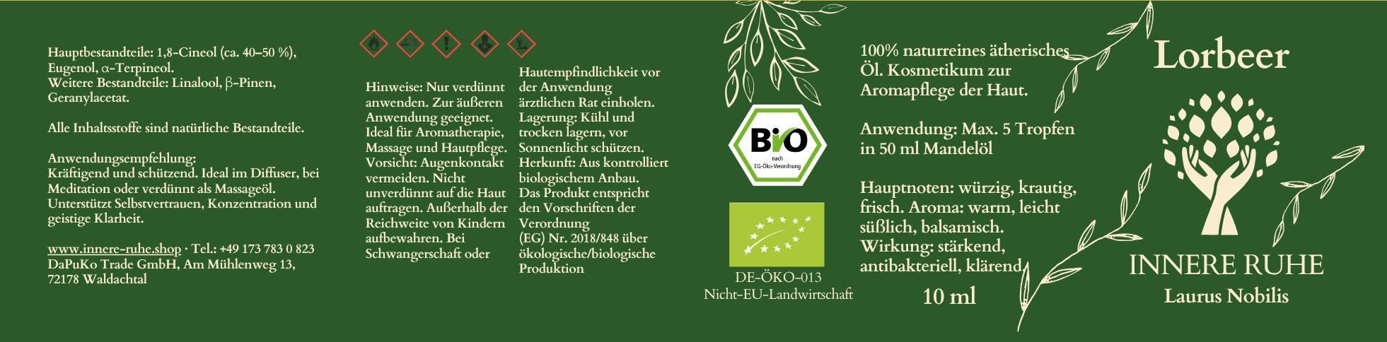 Lorbeeröl – Ätherisches Lorbeeröl – Bio-Qualität, 100% naturrein | Innere Ruhe