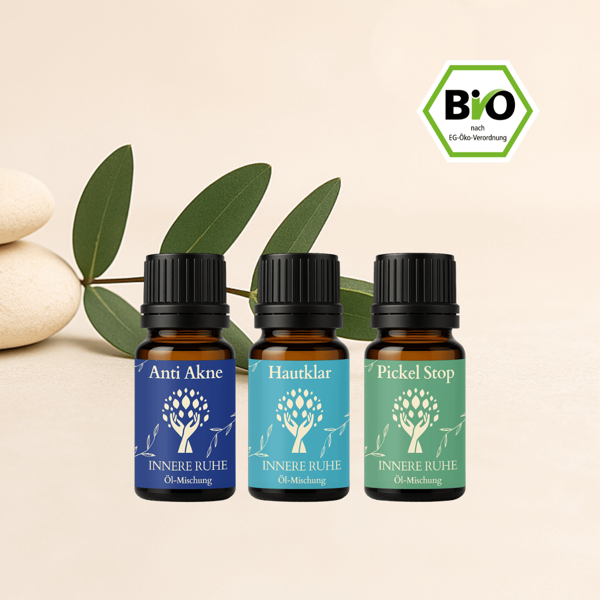 Stellen Sie sich vor, Sie kommen nach einem langen Tag nach Hause. Sie haben viel geleistet, und jetzt ist es Zeit, sich um sich selbst zu kümmern. Sie greifen zu Ihrem Öl-Set Hautbalance – Klar & Gepflegt und bereiten sich auf ein kleines Ritual der Selbstfürsorge vor. Sie wissen, dass die enthaltenen Inhaltsstoffe wie Anti-Akne, Pickel-Stop und Hautklar Ihre Haut sanft reinigen und ihr helfen, ihr Gleichgewicht wiederzufinden. Sie schließen die Augen und atmen tief ein. Der Tag ist vorbei, und Sie sind bereit, sich zu entspannen und Ihre Haut zu verwöhnen.