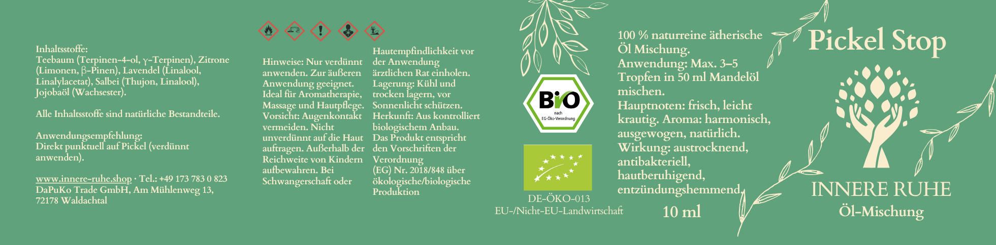 Pickel Stop Öl – Ätherische Ölmischung Pickel-Stop – Harmonischer Duft, 100% naturrein | Innere Ruhe