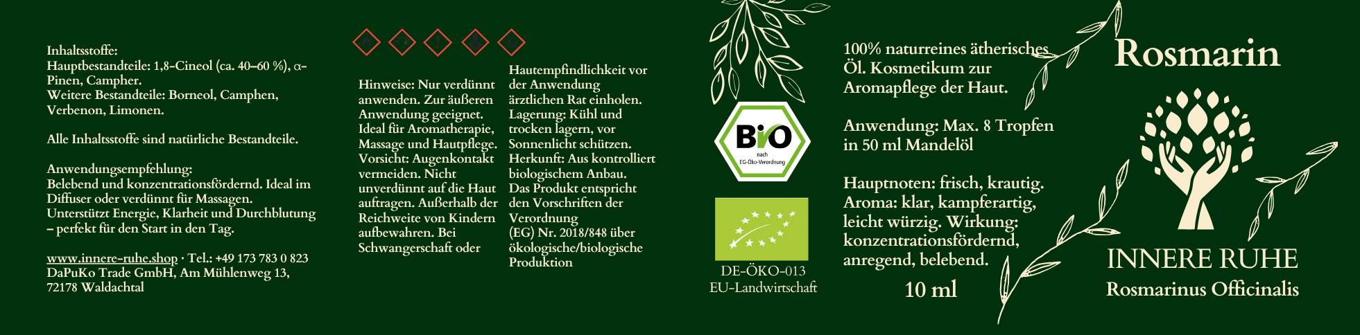 Rosmarinöl – Ätherisches Rosmarinöl – Bio-Qualität, 100% naturrein | Innere Ruhe