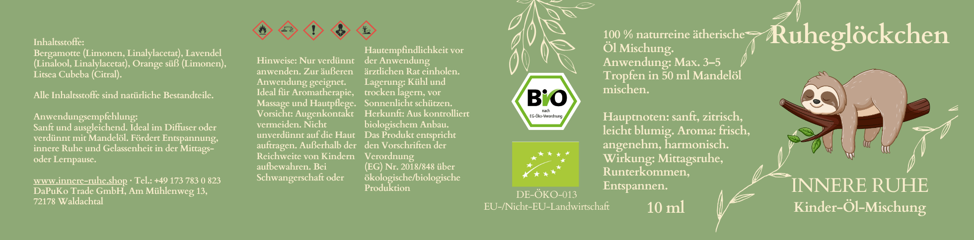 Unsere ätherische Ölmischung „Ruheglöckchen“ ist eine harmonische Kombination aus Bergamotte, Lavendel, süßer Orange und Litsea Cubeba. Sie wurde speziell entwickelt, um Kindern dabei zu helfen, sich nach dem Kindergarten oder während der Mittagsruhe sanft runterzufahren. Die Mischung ist 100% naturrein und BIO-zertifiziert, was eine sichere und qualitativ hochwertige Anwendung gewährleistet. Der Duft ist sanft, leicht blumig und zitrisch, was die Sinne beruhigt und eine entspannte Atmosphäre schafft, ohne Schläfrigkeit zu fördern.